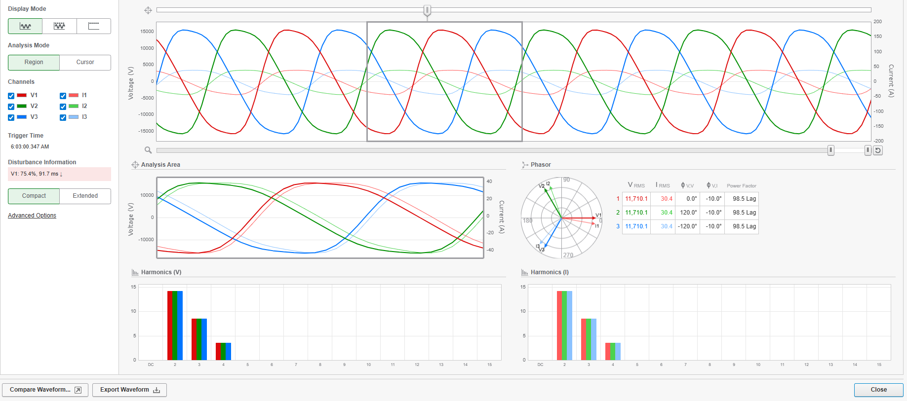 - Deep waveform capture with detailed event records, sag/swell/transient detection, and extensive harmonic and interharmonic analysis.